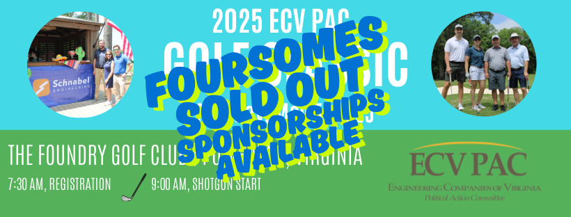 We are delighted to invite you to the Annual ECV PAC Golf Classic on Monday, May 5th, at the breathtaking Foundry Golf Club in Powhatan. Join us for a Cinco de Mayo day of fun and friendly competition; a portion of the proceeds will benefit the PAC.