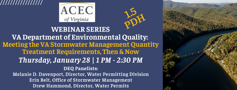 ACEC Virginia and DEQ have partnered to bring our members a webinar series to discuss topics surrounding Virginia's environment.